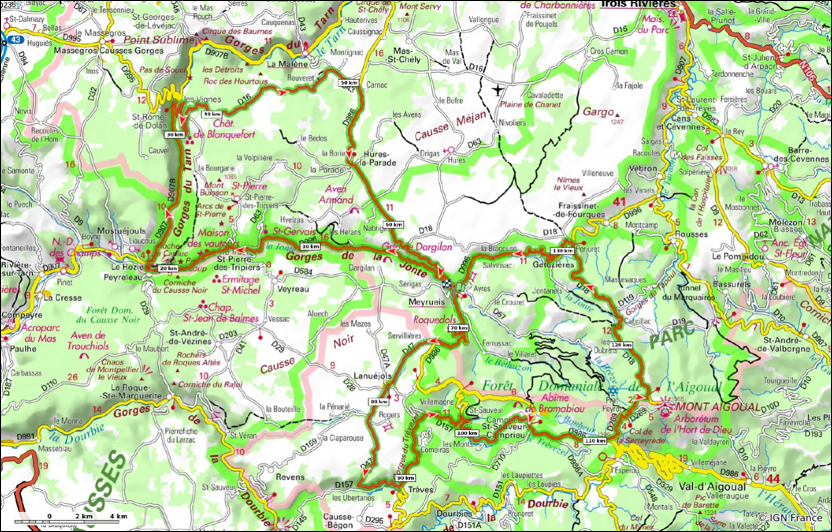 Le Tracé du TOUR du Mont Aigoual / 4éme étape de La CAMPILARO Cévennes :